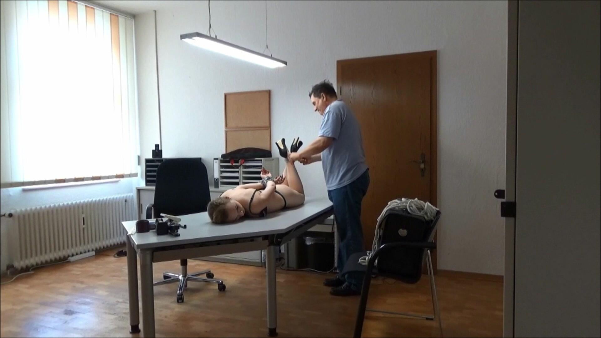Days later he comes to her office. There are still open questions to be answered. He ties Cindy to the post in the office so that she can answer his questions. What else will happen?